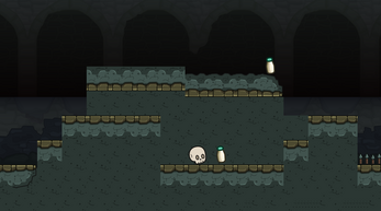 In our game, we interpret the theme healing through a skeleton’s quest to rebuild itself, bone by bone. As the player loses limbs, movement and abilities are affected: without legs you can’t jump, without arms you can’t throw. To heal, you must find and reattach your bones, or drink magical milk that strengthens your skeleton.
